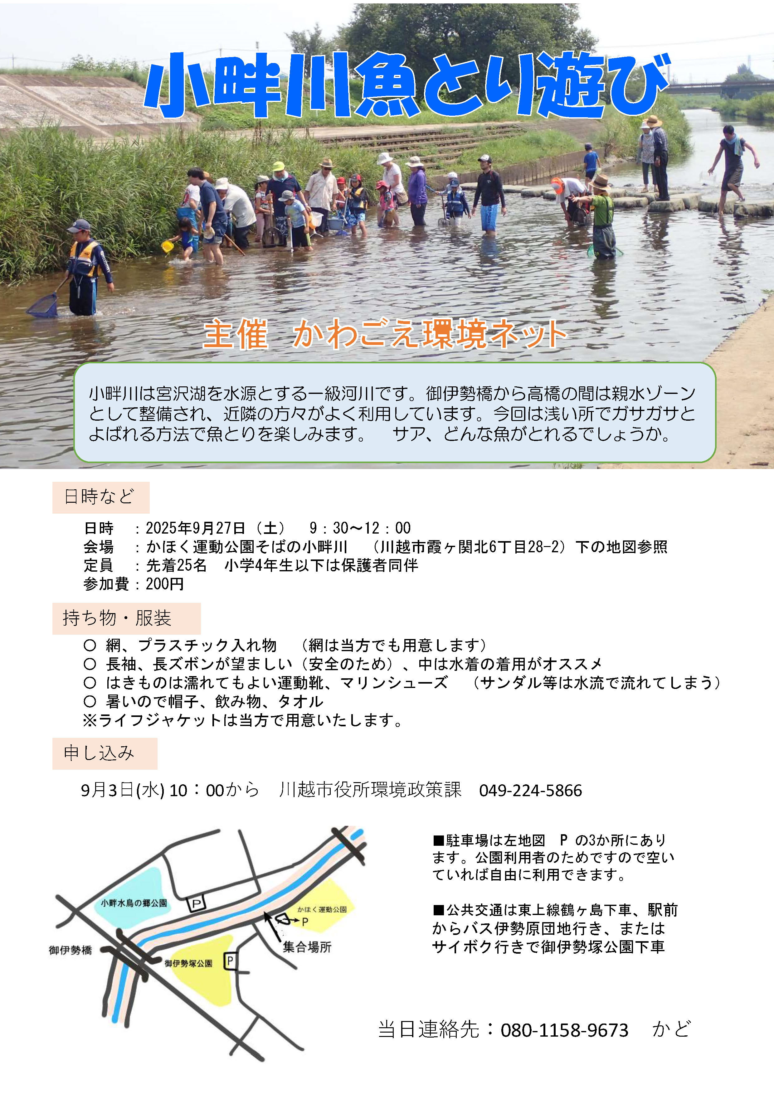 小畔川魚とり遊び(2025年9月27日土曜日9:30-12:00)【2025年9月3日(水)10:00から申込開始】