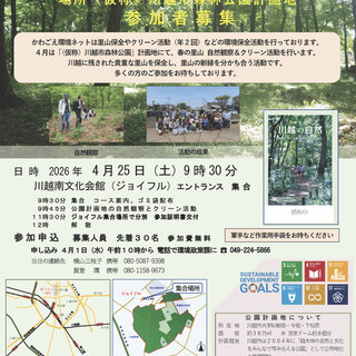 川越に残された貴重な里山を保全し、里山の新緑を分かち合う活動です。