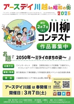 かわごえ環境ネットが後援している「第27回アースデイ川越in昭和の街2026」が2026年3月7日(土)10:30-15:30に蓮馨寺(川越市連雀町7-1)及び川越昭和の街で開催されます。入場無料、予約不要で参加いただけます。開催に先立ち「川柳コンテスト」を開催します。お題は『2050年〜ミライのまちの姿〜』で2026年2月7日応募締切です。